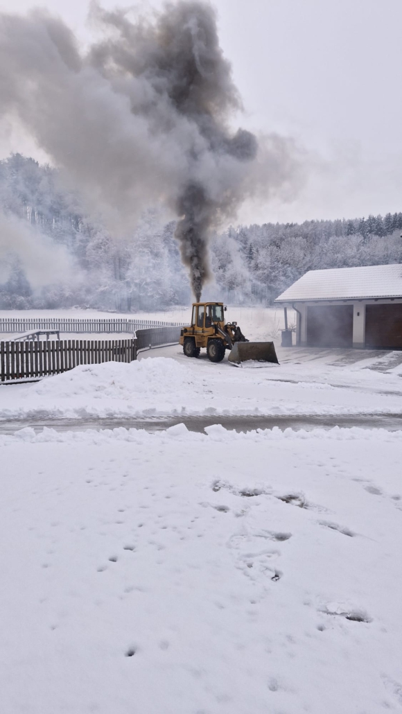Zu einem Brandeinsatz wurden wir heute Morgen an ein landwirtschaftlichen Anwesen im Walder Außenbereich alarmiert. An einem Hoflader kam es während Schneeräumarbeiten zu einer starken Rauchentwicklung. Aufgrund eines technischen Defekts konnte der Motor nicht mehr abgeschaltet werden.